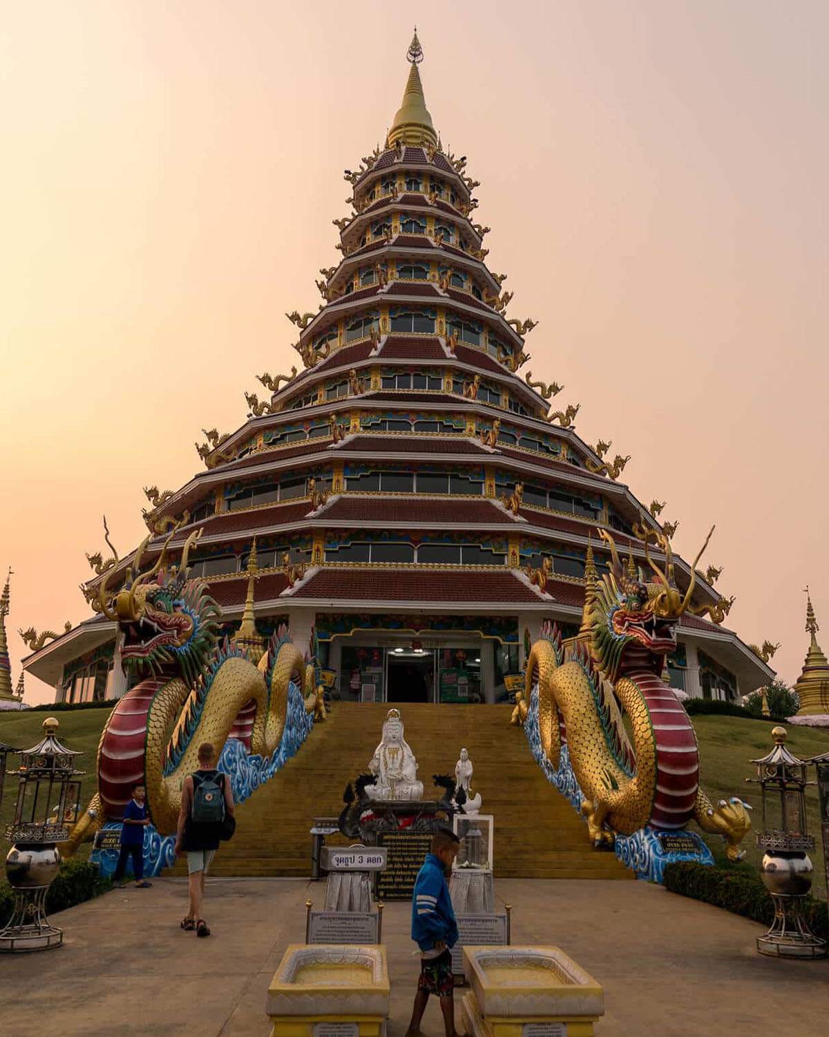 Journey north into a region shaped by misty mountains, quiet villages, and temples that feel like works of living art. Chiang Rai reveals itself through its three iconic masterpieces: the radiant White Temple with its surreal, symbolic architecture; the sapphire-toned Blue Temple glowing with warmth and intricate detail; and the bold, mysterious Black House, where art and philosophy blend in a captivating way. Each stop offers its own emotional atmosphere — bright, tranquil, and deeply thought-provoking. From there, the road leads toward the Golden Triangle, where Thailand, Laos, and Myanmar meet along the wide, peaceful Mekong. This full-day private tour unfolds gently at your pace, bringing together culture, creativity, and breathtaking scenery in an experience that feels both meaningful and unforgettable.
